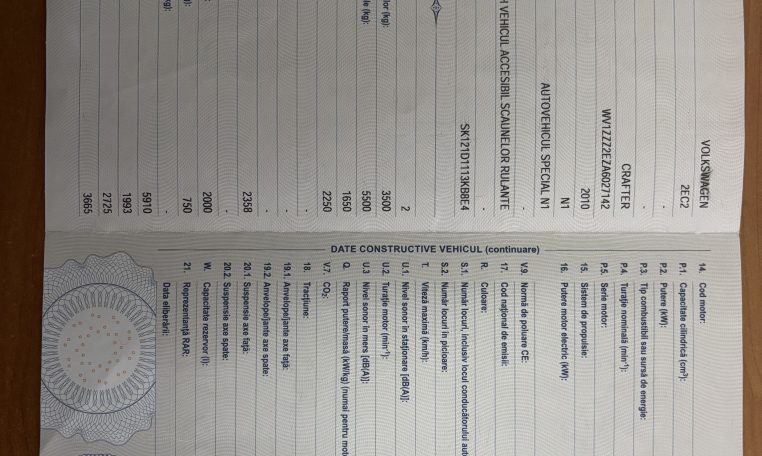 Volkswagen Crafter 2.5Tdi, an 2011, înmatriculat RO